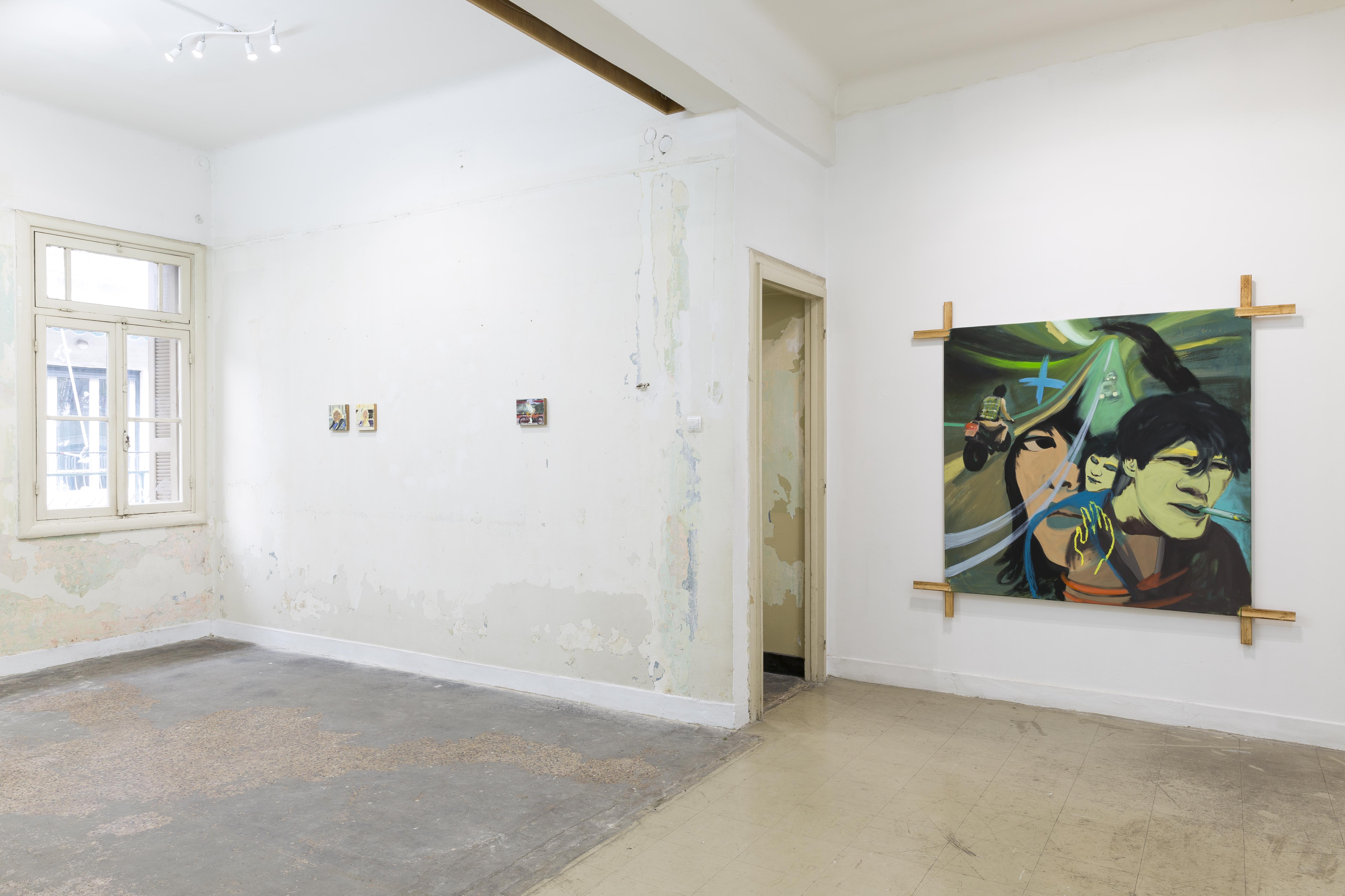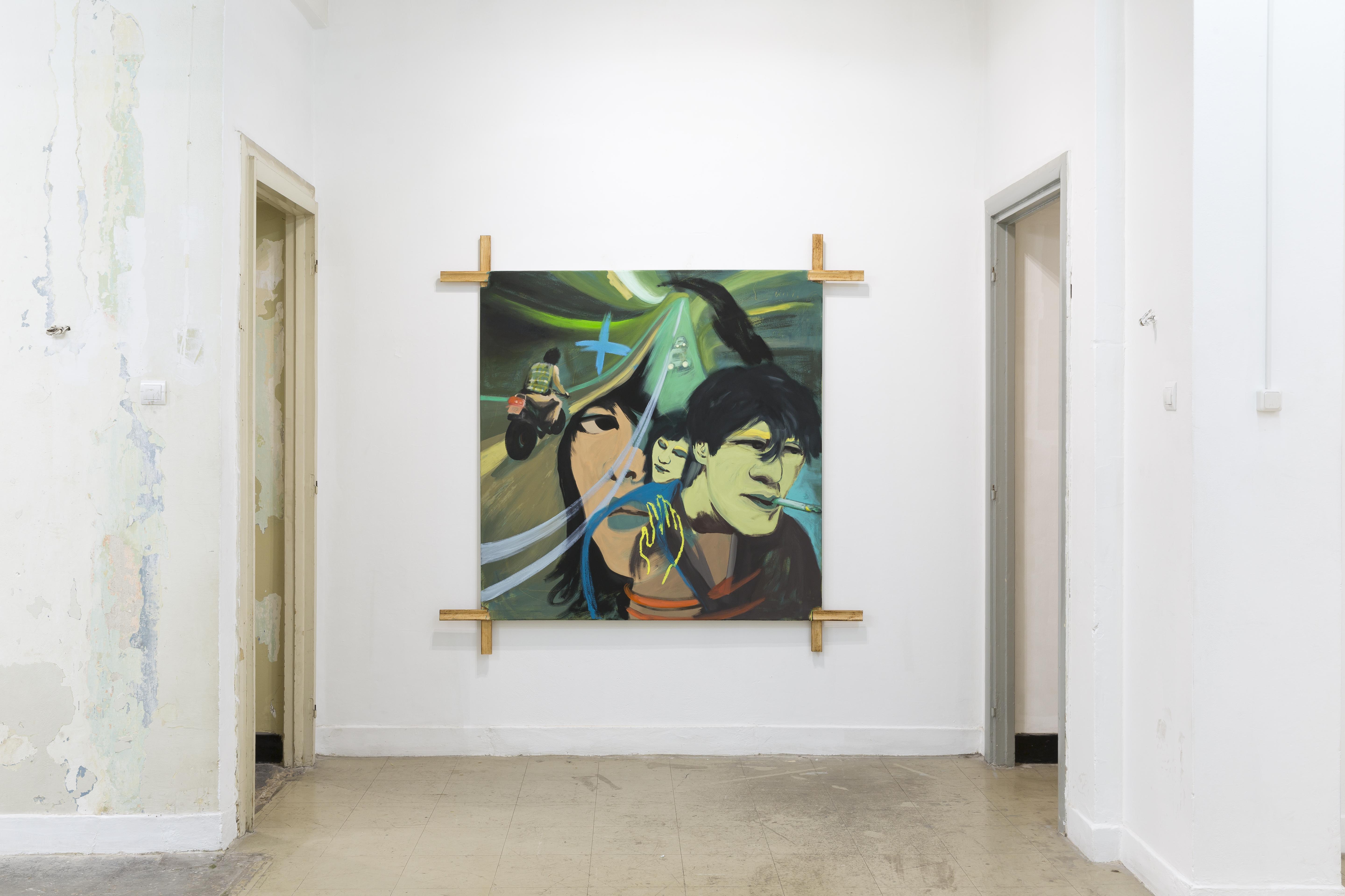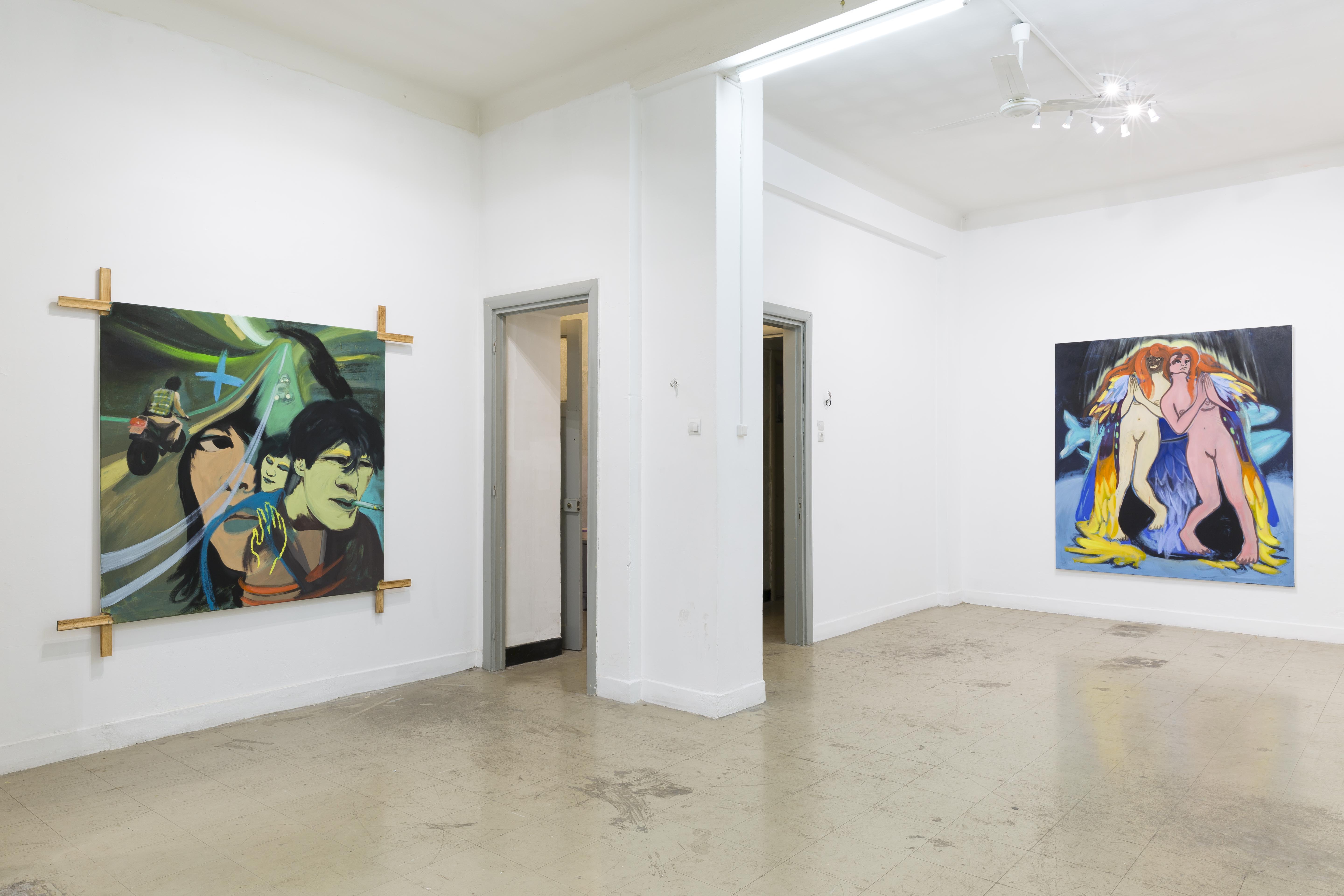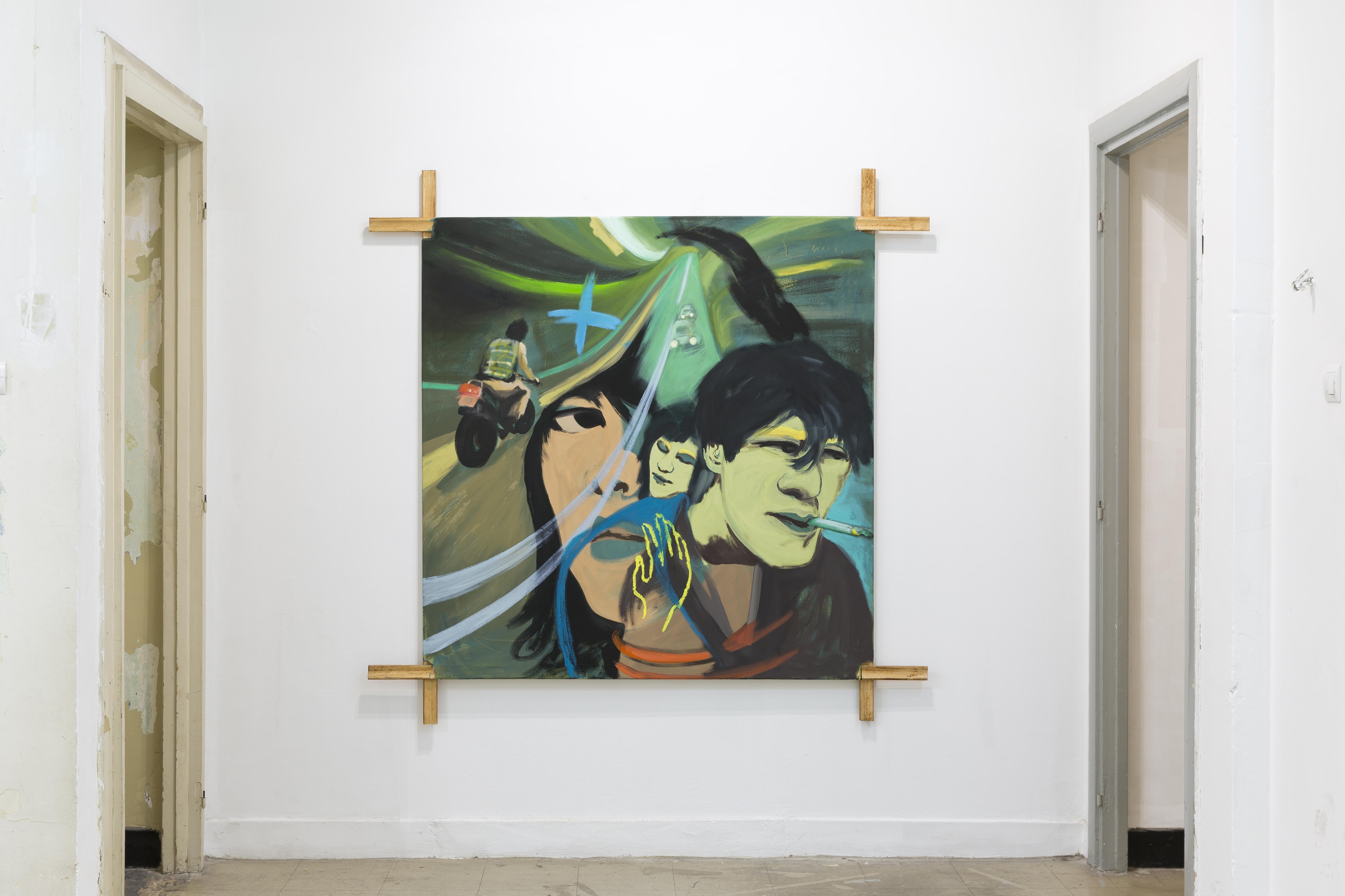 KYAN Projects is pleased to present Wormhole, a solo show by summer 2022, artist in residence Lena Brazin. After working in the KYAN studio for two months, the majority of works she produced in Athens, became the main core of her current solo presentation. In this exhibition, Lena Brazin attempts to express an understanding of the contemporary self, full of paradoxes and different textures. By representing mixeddimensions of one’s life, through ordinary moments and mystical experiences, physical matter dissolves in the exposure of the ethereal and subconscious. In her paintings she explores the seen and unseen with an attempt to materialize immateriality, to reflect the fulness of human existence. She uses multiple layers of vibrant colors and bold brushwork to exaggerate the expressively narrated objects, subjects, and symbols fromher past and present life. Finding their way in the compositions, are Illusions, assumptions, smoking mirrors, fears, anxieties, addictions, detours, and desires that mislead otherwise clear trajectories. She focuses on the observation of the universal complexity of everyday existence including its metaphysical aspects; The exhibition spotlights the idea that the Unknown is awaiting, and the only thing we know is that we will come out of it transformed on the other side. By translating her existential questioning into painting matter, she reveals her vision of personal metamorphosis.
